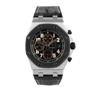 The Audemars New York Watch is a luxury piece of craftsmanship from the Royal Oak Offshore family. It features an automatic movement with a caliber of AP 2326 / 2840 and a power reserve of 60 hours. The precision of the watch is within COSC certification limits, with a sweep motion second hand. The case is made of 904L stainless steel and has a black bezel. The crystal is made of sapphire and the watch is 42.00mm thick.