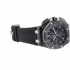 The Audemars Piguet Royal Oak Offshore Novelty is a high quality watch. It features a 904L stainless steel case and bezel, both in black, and a sapphire crystal for added protection. The movement is an automatic AP 3126 / 3840 caliber with a power reserve of 60 hours and a precision of (-3/+3 sec/day) within COSC certification limits. The Royal Oak bracelet is made of 904L stainless steel and is adjustable for all sizes