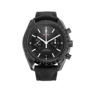 The Omega Speedmaster Dark Side Of The Moon 311.92.44.51.01.003 Omega Speed Master Dark Side of the Moon is a high quality watch. It features a 904L stainless steel case and bezel, both in black, and a sapphire crystal. The movement is an automatic caliber 9300 with a power reserve of 60 hours and a precision of (-3/+3 sec/day) within COSC certification limits. The second hand has a sweep motion. The bracelet is a combination of nylon and leather in black, with adjustable links and a 904L stainless steel tang clasp.