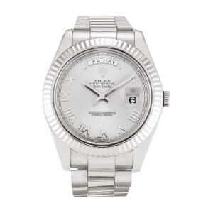 The Rolex Day-Date 218239-0041 V6 White Roman Dial is an exquisite timepiece that flawlessly captures the essence and grandeur of its legendary original counterpart. This remarkable is more than just a knockoff Rolex; it is a meticulous 1:1 made with exceptional precision and attention to detail. Envision the timeless elegance and luxurious feel of a Rolex on your wrist, but with a significantly more accessible price point. Built from 904L stainless steel, the case and bezel exude a sophisticated white gold color that radiates under any lighting condition, adding a touch of refined elegance to your ensemble.
