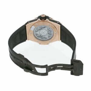 The Hublot Big Bang Sang Bleu King Gold 415.OX.1118.VR.MXM17 is a luxurious watch that is sure to turn heads. The case is made of 904L stainless steel and is rose gold and gem-set in color. The bezel is also made of 904L stainless steel and is rose gold and gem-set in color. The crystal is sapphire and the size is 45.00 mm. The bracelet is made of leather and is adjustable for all sizes. The clasp is made of 904L stainless steel and is black in color.