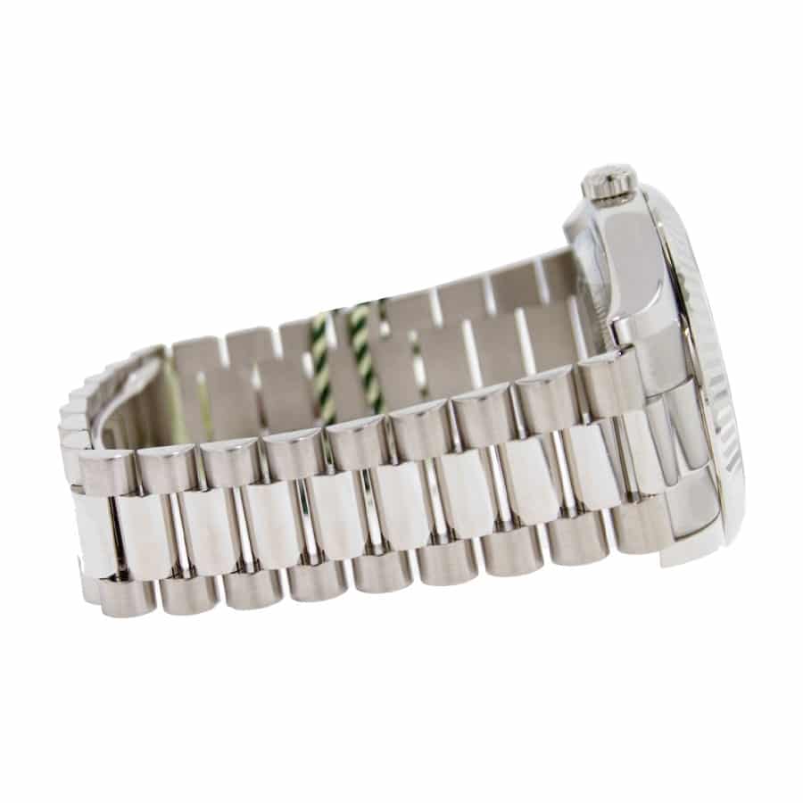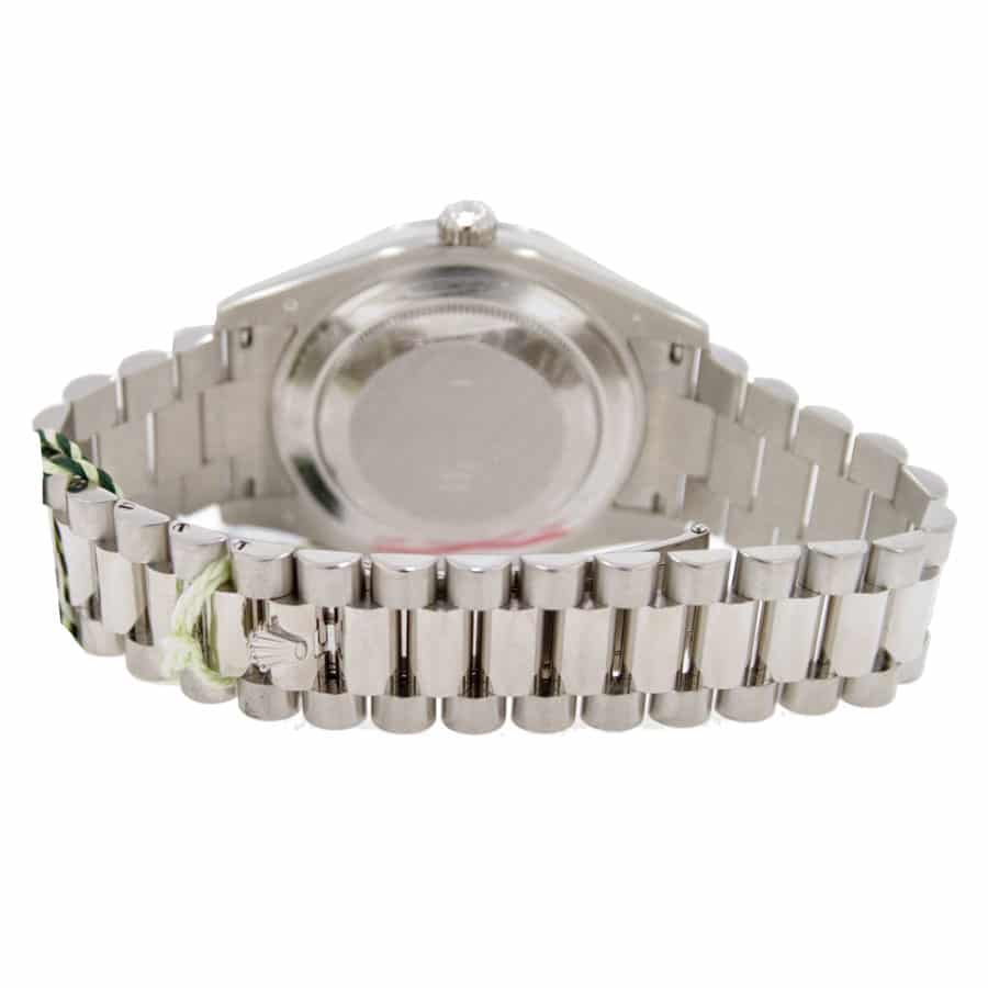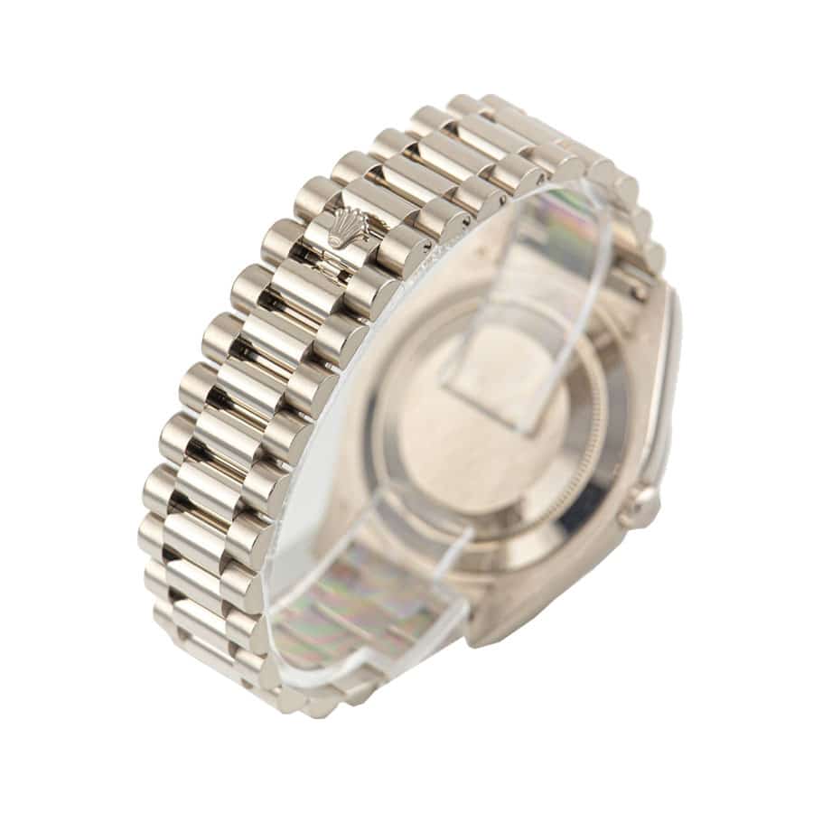 The sheer quality of the Rolex Day-Date II 218239 is evident in every detail. Protected by a scratch-resistant sapphire crystal, the dial remains immaculate, preserving its shimmering beauty through the years. The bracelet, also forged from 904L stainless steel, features an adjustable link and a secure double-fold clasp, ensuring a perfect fit that feels as if the watch were molded just for you. The watch’s heart, the automatic 3156 caliber movement, boasts an impressive 60-hour power reserve and operates with exceptional precision, certified by COSC to ensure it runs between -3/+3 seconds per day. Envision the smooth motion of the sweep second hand, a testament to the intricate engineering within.