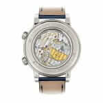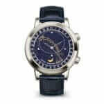 The Patek Philippe Celestial Grand 6102P is a luxurious watch that is sure to impress. It features a 904L stainless steel case and bezel, with a sapphire crystal for added protection. The movement is an automatic caliber 240 LU CL C, with a power reserve of 60 hours and precision of -3/+3 seconds per day within COSC certification limits. The dial is blue with stick and dot indices, and the hands are 904L stainless steel. The bracelet is made of leather with adjustable links and a 904L stainless steel fold clasp.