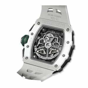 The Richard Mille Le Mans Classic White ATZ Ceramic Chronograph RM11-03 is a high quality watch. It features a 904L stainless steel case with a transparent color and a white ceramic bezel. The movement is an automatic RMAC3 caliber with a power reserve of 60 hours and a precision of (-3/+3 sec/day) within COSC certification limits. The dial is silver with Arabic numerals and 904L stainless steel hour markers and hands.