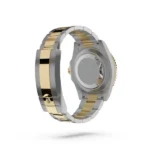 The two-tone bezel, a harmonious blend of yellow gold and caramel, further enriches its luxurious appeal. Meanwhile, the bracelet crafted from the same 904L stainless steel and coupled with a fold clasp in steel and yellow gold ensures not only adjustability but also a snug, secure fit on your wrist. This bracelet’s seamless integration with the case reflects Rolex’s commitment to both form and function.
