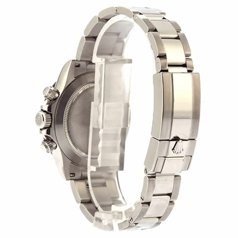 Daytona watches are adorned with three striking chronograph sub-dials, all encased within a sleek 40mm stainless steel frame. The bezel, a work of art, is meticulously sculpted from lustrous black ceramic and features a meticulously etched tachymeter scale. The heart of this exceptional timepiece beats with a Swiss automatic movement, ensuring both accuracy and reliability. And, with water resistance up to 100 meters, it’s not just a sight to behold but a companion for your active lifestyle.