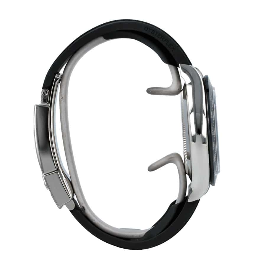 Your senses will be further delighted by the textured rubber bracelet, which is not only comfortable but also adjustable, allowing for a customised fit. The fold clasp securely fastens the watch to your wrist, providing peace of mind and adding to the watch’s overall sleek and polished aesthetic. The experience is one of unparalleled luxury and comfort.