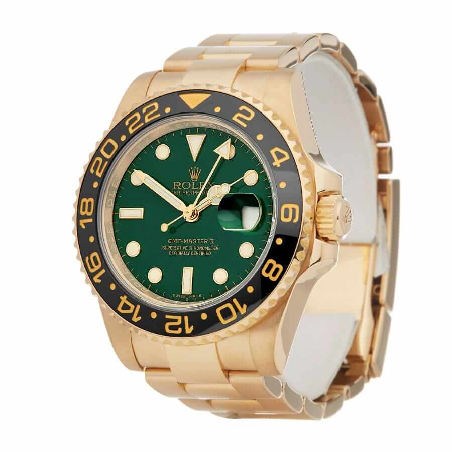 Beyond its aesthetic allure, the Rolex GMT-Master II 11678LN Yellow Gold Green Dial Oyster is designed for accurate timekeeping and reliable performance. Picture yourself relying on this watch for your tight schedules and important meetings, assured by its precise movement and unwavering reliability. Whether you’re navigating through your packed daily routine or embarking on a global adventure, this watch stands as a dependable companion.
