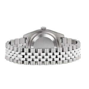 The Jubilee bracelet, crafted from the same high-grade 904L stainless steel, exudes both comfort and strength. Its adjustable links and fold clasp in steel ensure a secure and customizable fit, perfectly complementing the watch’s overall aesthetic. The dial, a sophisticated shade of grey, features Roman numerals alongside 904L stainless steel hour markers and hands, creating a visually stunning and easy-to-read interface.